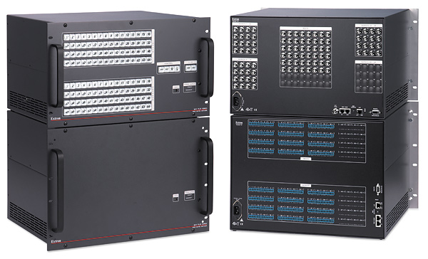 The Extron MAV Plus 4848 AV matrix switchers are designed to route composite video and stereo audio signals. Both 48x48 matrix switchers feature 150 MHz (-3 dB) video bandwidth, fully loaded, backlit I/O selection buttons, and Ethernet control technology.