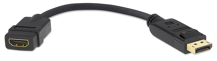 Note: This is a powered adapter and must be used directly at the DisplayPort source. It is not intended to be used at a DisplayPort video display. Do not use additional cables or adapters between the source output and the male end of the DisplayPort adapter.